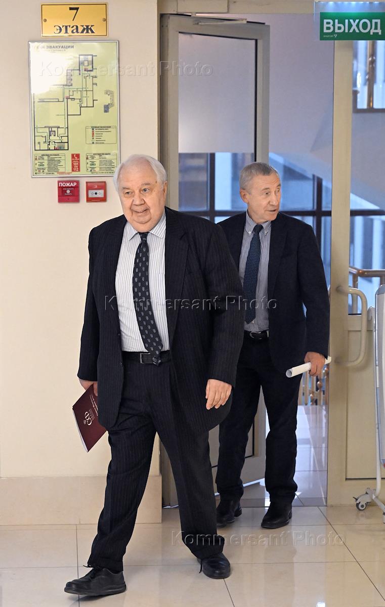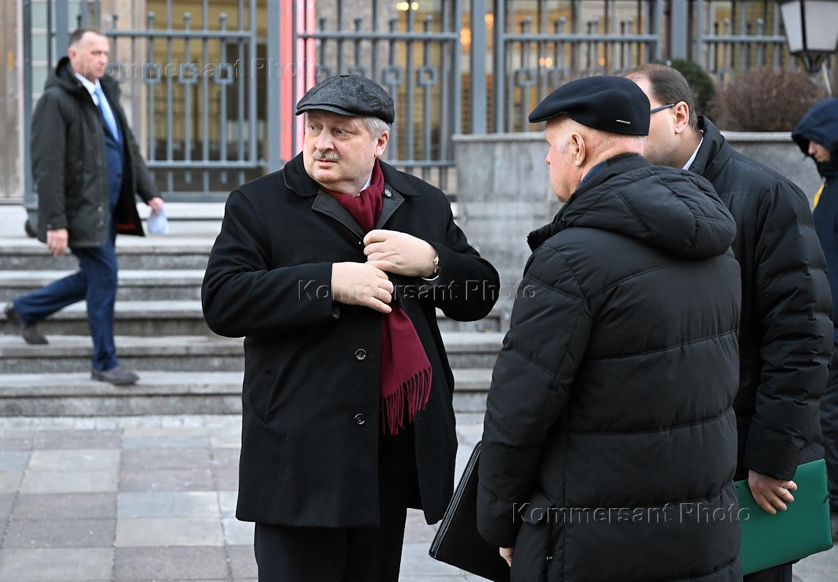 Заседание комитета Совета Федерации (СФ) России по международным делам. Директор Департамента Северной Америки, кандидат на должность посла России в США Александр Дарчиев (слева) после заседания.