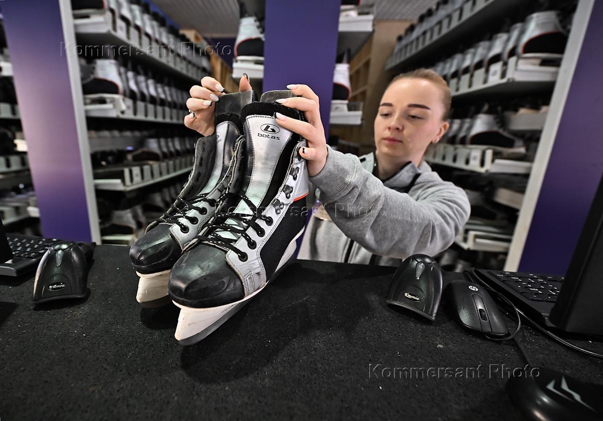 Жанровая фотография. Каток на территории ВДНХ. Сотрудница проката коньков.