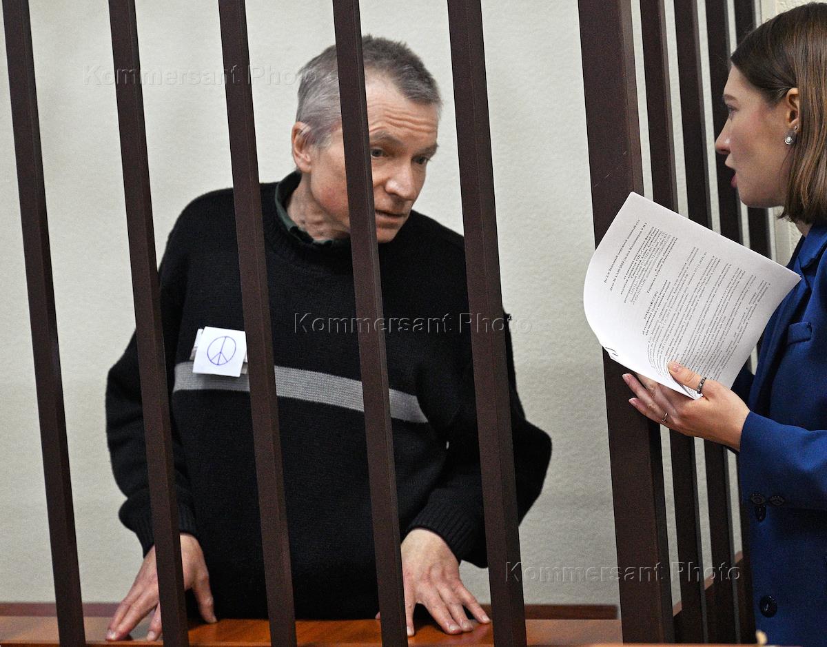 Рассмотрение уголовного дела против депутата Красносельского округа Москвы Алексея Горинова, обвиняемого в распространении заведомо ложной информации о ВС России, на выездном заседании 2-го Западного окружного военного суда во Владимирском гарнизонном военном суде. Бывший депутат Красносельского округа Москвы Алексей Горинов во время заседания суда.