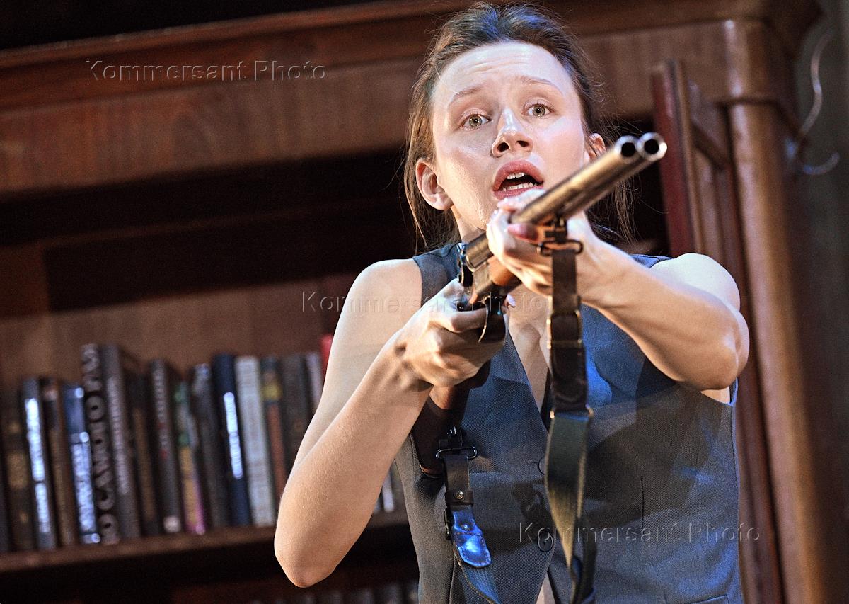 Пресс-показ спектакля "Чайка" по одноименной пьесе А.П. Чехова в постановке художественного руководителя Московского художественного театра (МХТ) имени А.П. Чехова Константина Хабенского на сцене МХТ имени А.П. Чехова. Актриса Полина Романова во время спектакля.