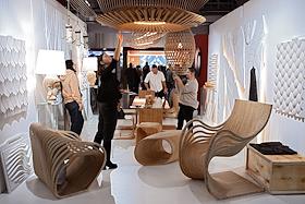 V Moscow Interior and Design Week in pavilions 55 and 57 on the territory of VDNKh. Stand of manufacturers of wicker furniture and interior items.