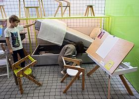 V Moscow Interior and Design Week in pavilions 55 and 57 on the territory of VDNKh. Stand of furniture manufacturers for children's rooms.
