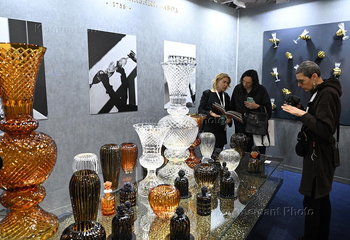 V Московская неделя интерьера и дизайна в павильонах 55 и 57 на территории ВДНХ. Стенд Гусевского хрустального завода на выставке.