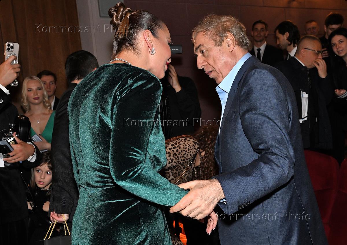 Premiere of singer Philip Kirkorov's video "Black Panther" at the Khudozhestvenny cinema. Head coach of the Russian rhythmic gymnastics team Irina Viner (right) at the premiere.