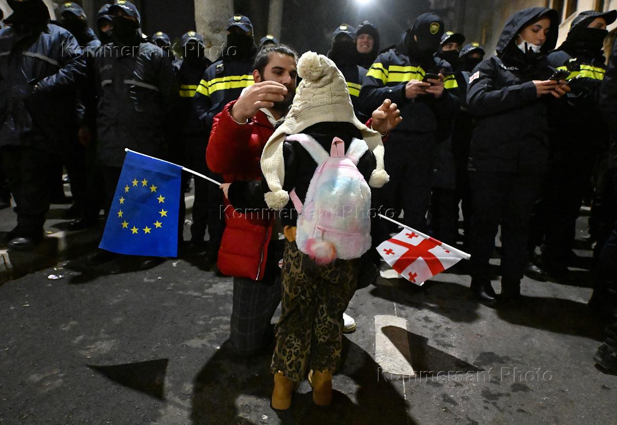 Ситуация в Тбилиси. Акция протеста против решения властей отказаться от переговоров о вступлении в Евросоюз.