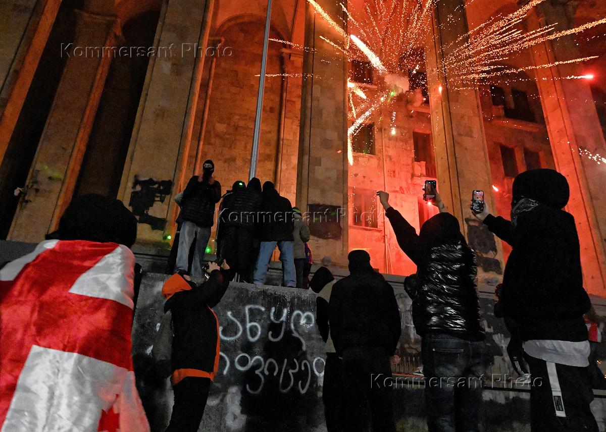 Ситуация в Тбилиси. Акция протеста оппозиции на улице Руставели. Оппозиционные партии не признали итогов парламентских выборов и призвали сторонников выходить на акции протеста. 28 ноября премьер-министр Ираклий Кобахидзе объявил о решении приостановить начало переговоров по членству Грузии в ЕС до 2028 года. Разгон участников акции с помощью водометов.