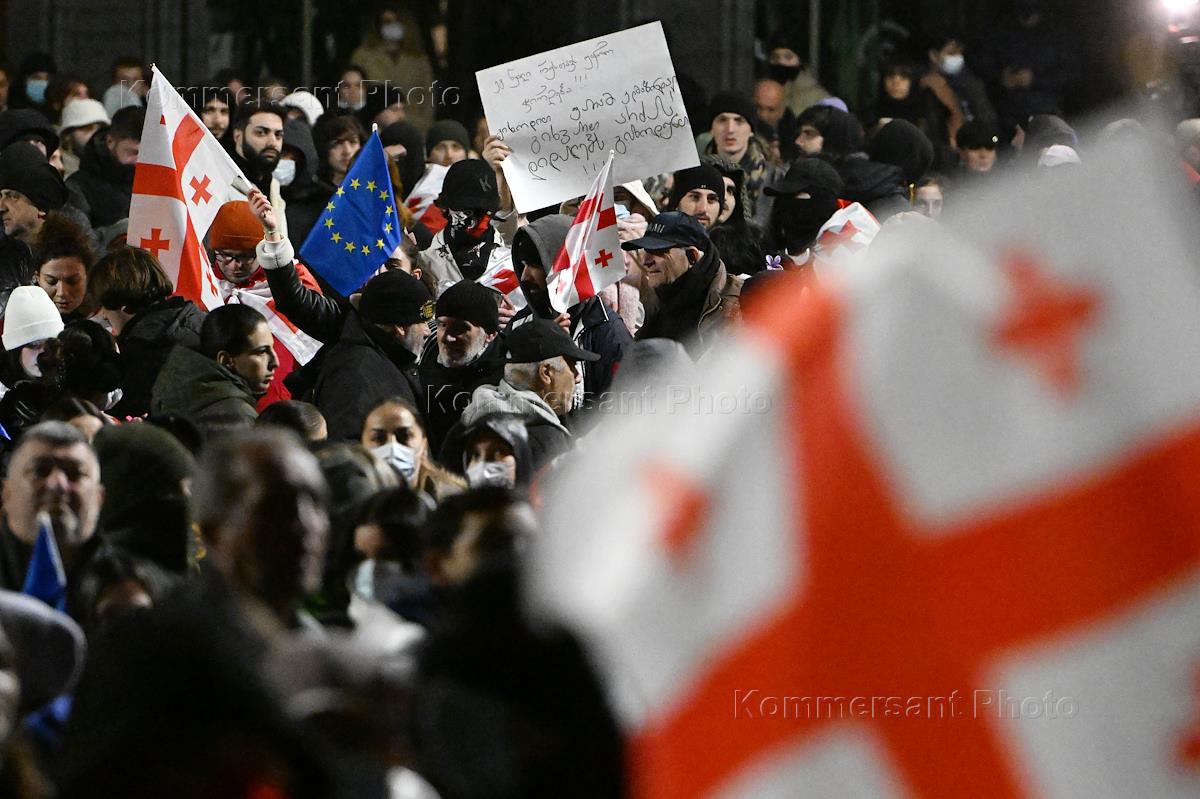 The situation in Tbilisi. A protest against the authorities' decision to abandon negotiations on joining the European Union. Protesters outside the parliament building.