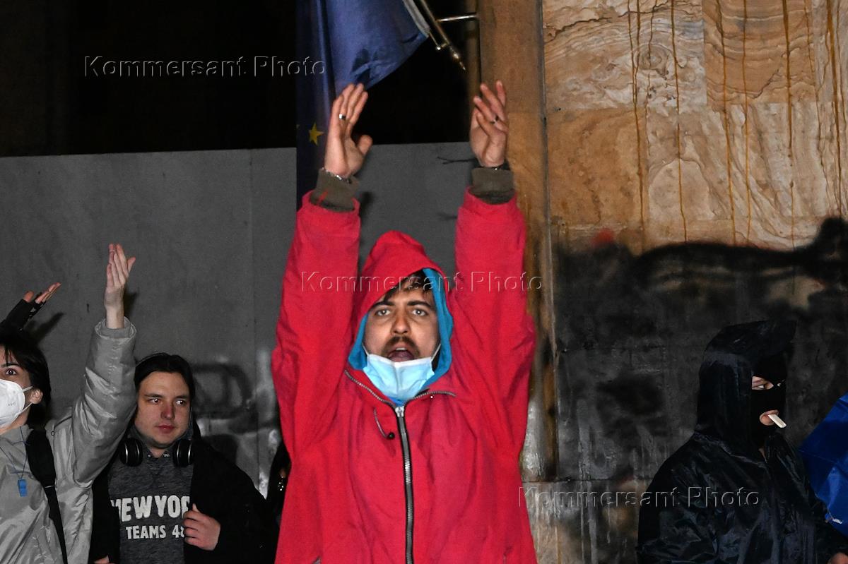 The situation in Tbilisi. A protest rally outside the Georgian Parliament building against the authorities' decision to abandon negotiations on joining the European Union. Participants during the protest.