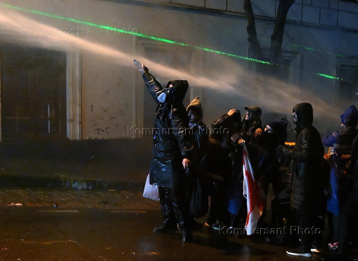 The situation in Tbilisi. A protest against the authorities' decision to abandon negotiations on joining the European Union. Participants during the protest. Police officers disperse protesters with water cannons.