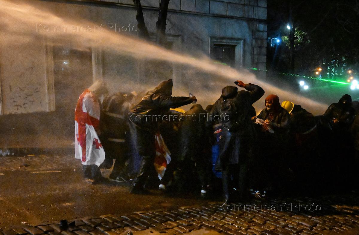 The situation in Tbilisi. A protest against the authorities' decision to abandon negotiations on joining the European Union. Participants during the protest. Police officers disperse protesters with water cannons.