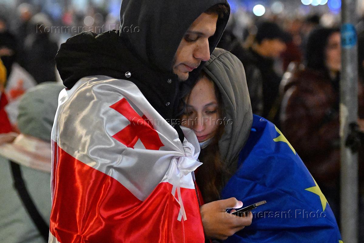 The situation in Tbilisi. A protest rally outside the Georgian Parliament building against the authorities' decision to abandon negotiations on joining the European Union. Participants during the protest.