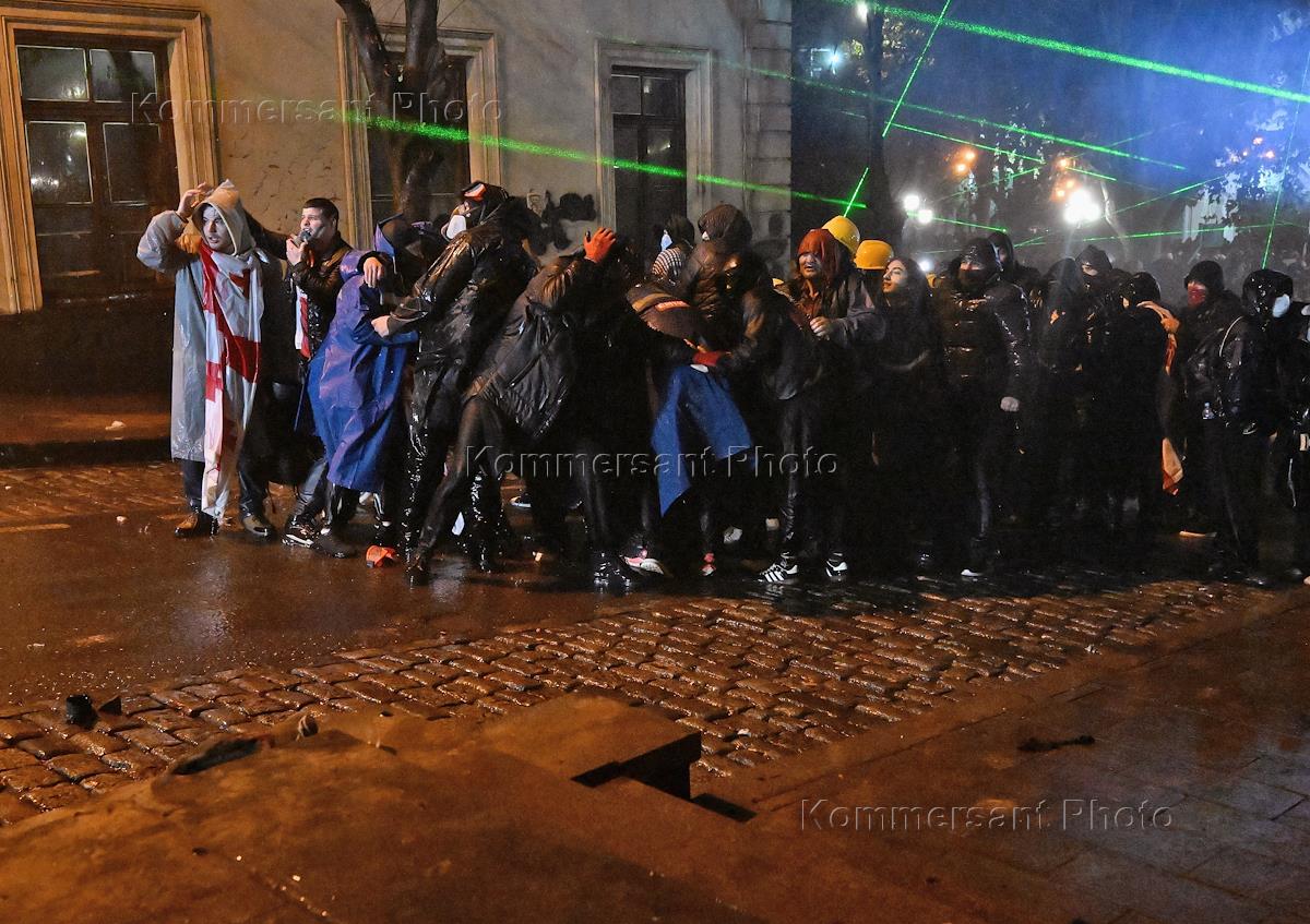 The situation in Tbilisi. Protests against the authorities' decision to abandon negotiations on joining the European Union. Protest participants during a clash with law enforcement officers.