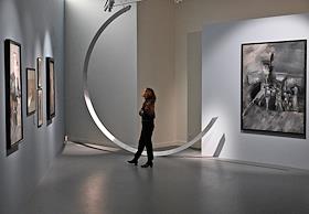 State Historical and Art Museum New Jerusalem. Exhibition "Weightlessness. Alexander Labas about speed, progress and love". Visitors in the museum.