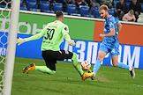 World Russian Premier League (RPL) 2024/2025. 17th round. Match between the teams "Zenit" (St. Petersburg) - "Krylia Sovetov" (Samara) at the Gazprom Arena stadium. Football player of the Zenit team Maxim Glushenkov (right) and goalkeeper of the Krylia Sovetov team Sergei Pesyakov (left) during the match.