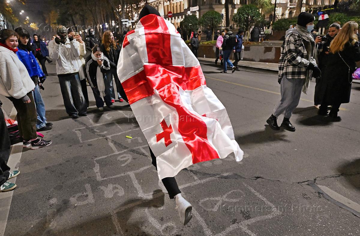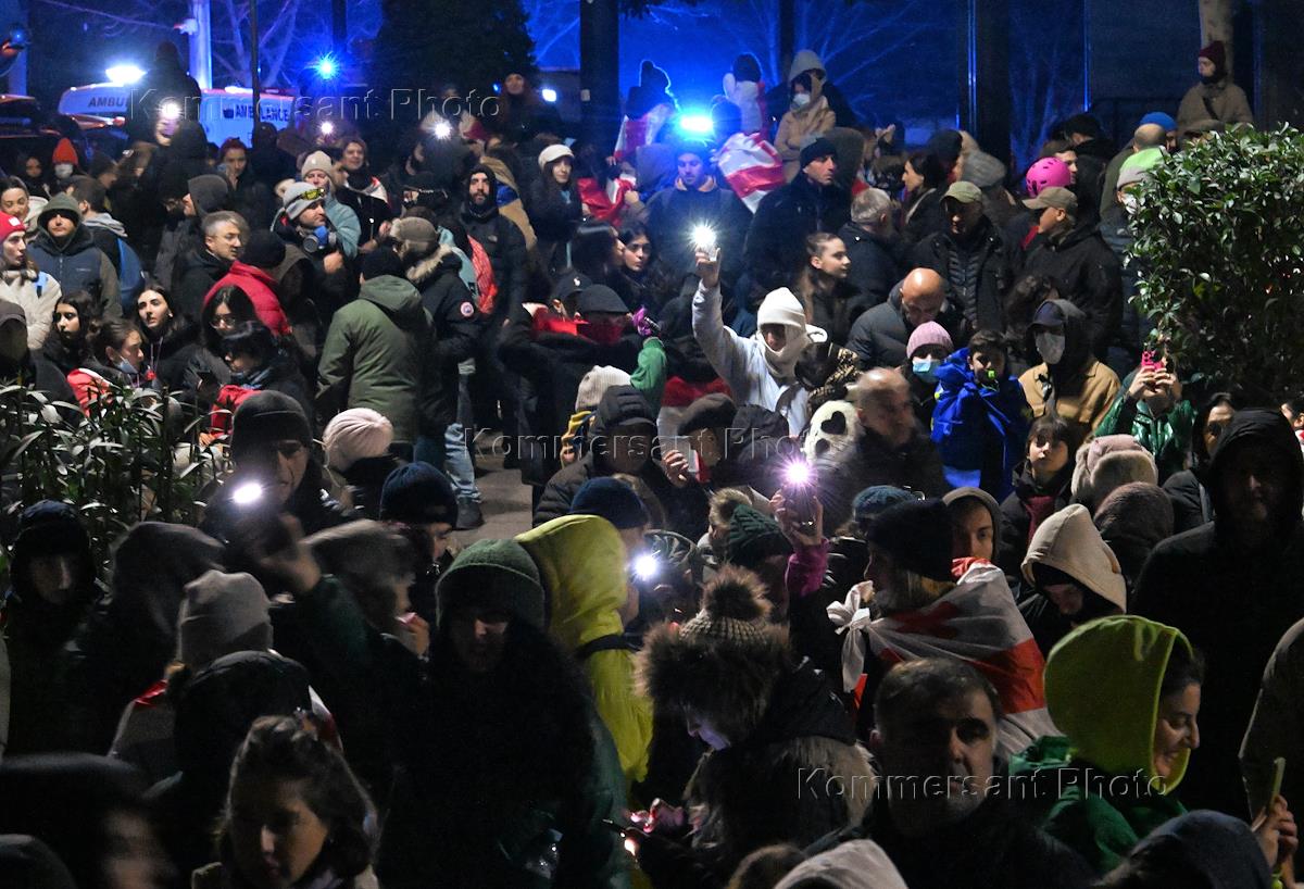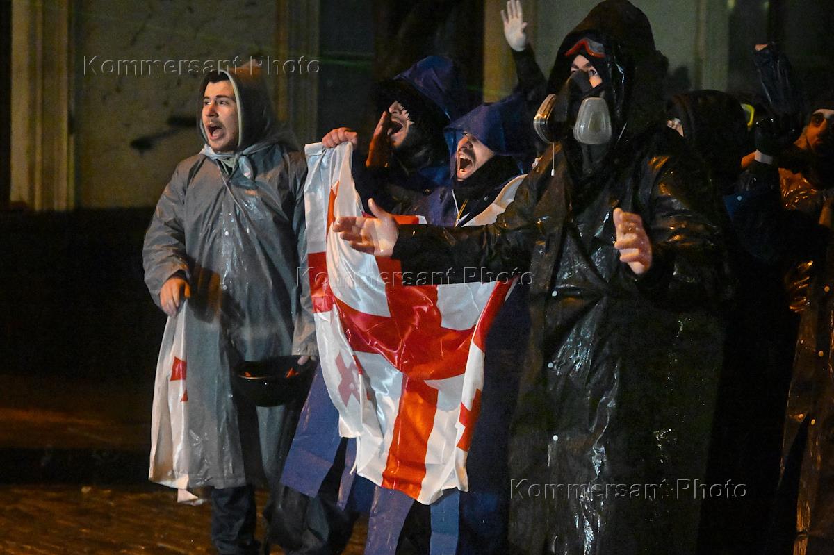 Ситуация в Тбилиси. Акция протеста у здания парламента Грузии против решения властей отказаться от переговоров о вступлении в Евросоюз. Участники во время акции.