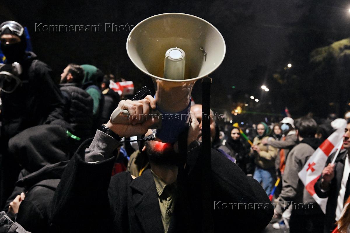 The situation in Tbilisi. A protest rally outside the Georgian Parliament building against the authorities' decision to abandon negotiations on joining the European Union. Participants during the protest.