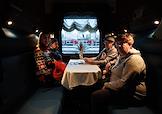 Festive trip of the tourist retro train "Ural Express" dedicated to the second anniversary of the launch of the project. Genre photography. Train passengers in the dining car.