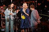Церемония подведения итогов года музыкальной индустрии от "Яндекс Музыка" "Yam Session 2024" в Московском международном Доме музыки. Певица "Элли на маковом поле" (Виктория Трунова) (в центре) во время награждения победителей на церемонии.