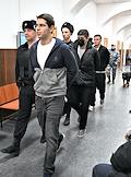 Announcement of the verdict in the case against Viktor Yakubov, Emil Gurbanov and Ilya Safonov accused of theft on an especially large scale within the framework of the Pushkin Card program, in the Basmanny District Court. From left to right: defendants Viktor Yakubov, Ilya Safonov and Emil Gurbanov before the start of the court hearing.