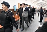 Announcement of the verdict in the case against Viktor Yakubov, Emil Gurbanov and Ilya Safonov accused of theft on an especially large scale within the framework of the Pushkin Card program, in the Basmanny District Court. From left to right: defendants Ilya Safonov, Viktor Yakubov and Emil Gurbanov during a court hearing.