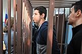 Announcement of the verdict in the case against Viktor Yakubov, Emil Gurbanov and Ilya Safonov accused of theft on an especially large scale within the framework of the Pushkin Card program, in the Basmanny District Court. Defendants Viktor Yakubov (center) and Emil Gurbanov (right) during a court hearing.