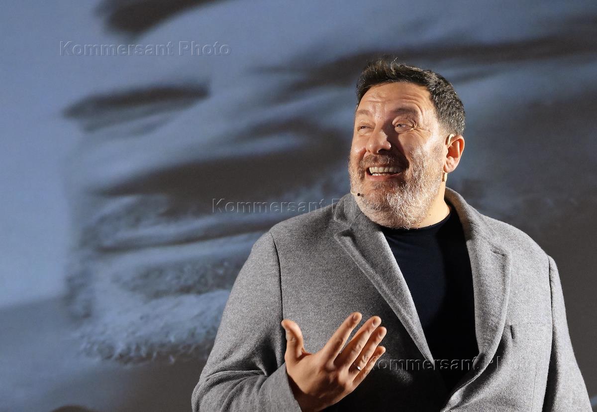 Presentation of the new author's project of the writer Sergei Minaev "Reading" in the Gallery on Serebryanicheskaya Embankment. Director Klim Kozinsky at the presentation.