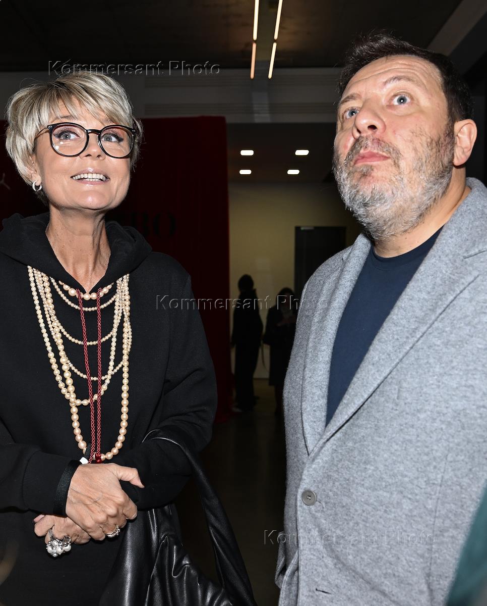 Презентация нового авторского проекта писателя Сергея Минаева "Чтиво" в Галерея на Серебрянической набережной. Писатель Сергей Минаев и соосновательница телеграмм-канала "Антиглянец" Юлия Пош на презентации.