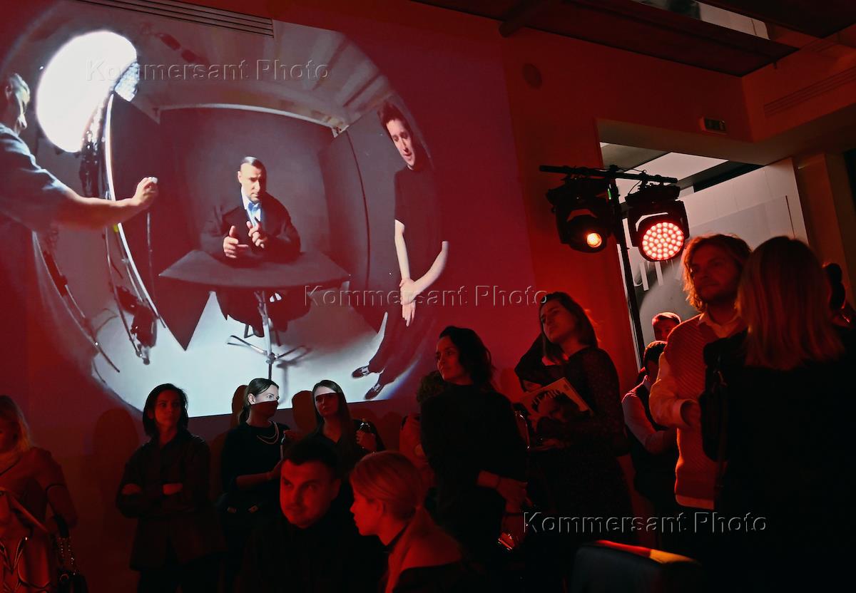 Презентация нового авторского проекта писателя Сергея Минаева "Чтиво" в Галерее на Серебрянической набережной. Режиссер Клим Козинский (слева) на презентации.