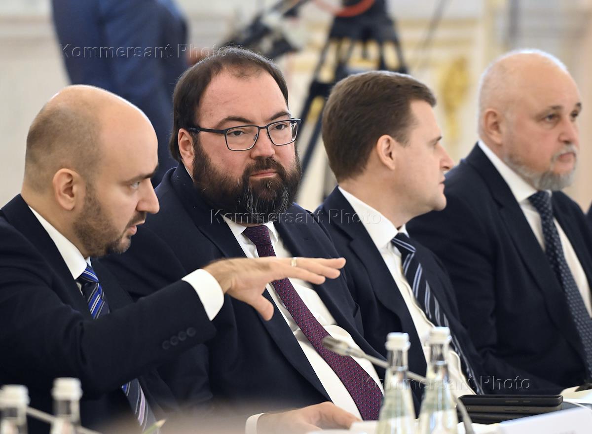 Заседание Совета по стратегическому развитию и национальным проектам в Кремле. Слева направо: губернатор Самарской области Вячеслав Федорищев, министр цифрового развития, связи и массовых коммуникаций России Максут Шадаев, министр России по развитию Дальнего Востока и Арктики Алексей Чекунков и министр энергетики России Сергей Цивилев во время заседания.