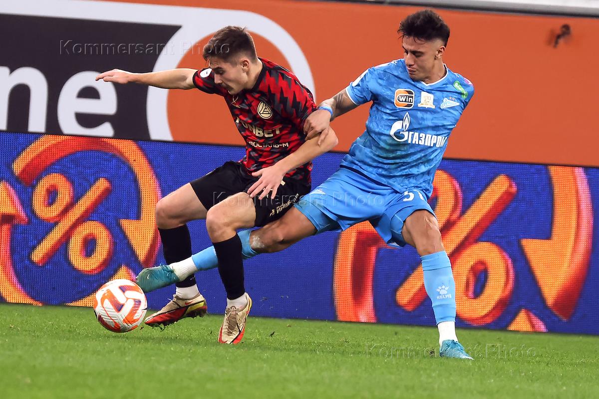 Мир Российская Премьер-Лига (РПЛ) 2024/2025. 18-й тур. Матч между командами "Зенит" (Санкт-Петербург) – "Акрон" (Тольятти) на стадионе "Газпром Арена". Игрок команды "Зенит" Лусиано (слева) во время матча.