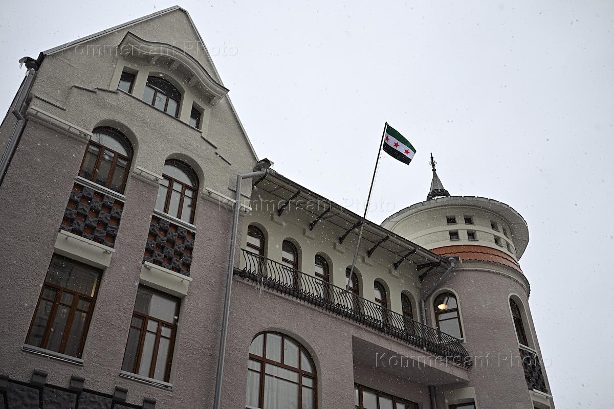 Флаг сирийской оппозиции поднят над посольством Сирии в РФ.