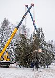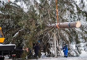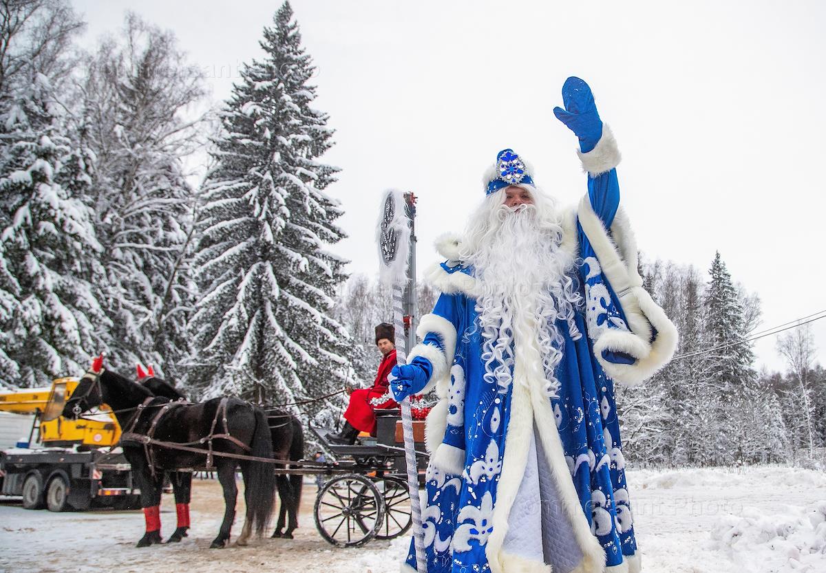 Церемония спила главной новогодней ели в лесу у деревни Знаменка Можайского городского округа Московской области.