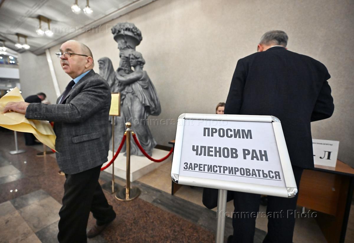 General meeting of members of the Russian Academy of Sciences (RAS) in the building of the Presidium of the RAS.
