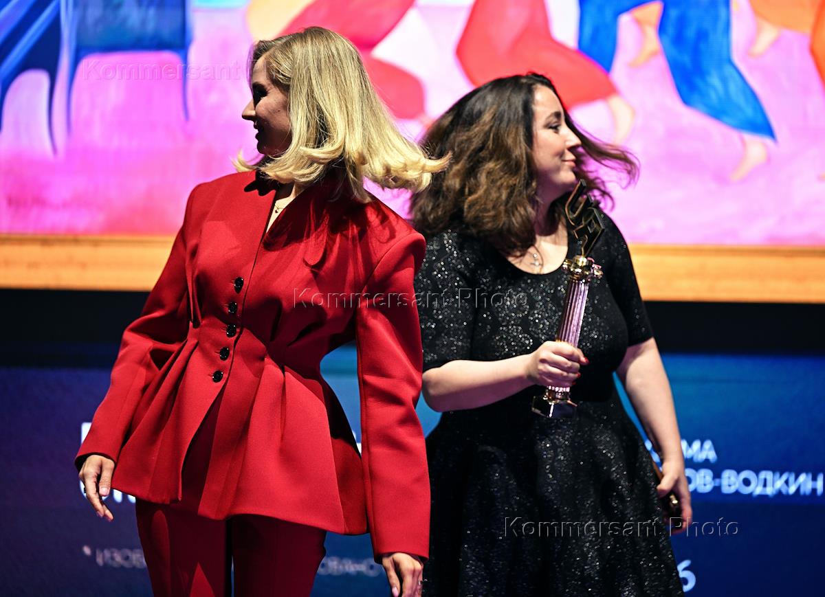XXI торжественная церемония вручения Национальной премии за вклад в развитие российского сегмента сети Интернет "Премия Рунета – 2024" в Государственной Третьяковской галерее на Кадашевской набережной. Писательница, блогер Кети Сапович (слева) на церемонии.