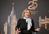 25-я церемония вручения премии правительства Москвы в сфере туризма и гостеприимства "Путеводная звезда" в кинотеатре "Художественный". Директор Департамента информации и печати МИД России Мария Захарова во время церемонии.