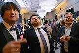 25-я церемония вручения премии правительства Москвы в сфере туризма и гостеприимства "Путеводная звезда" в кинотеатре "Художественный". Слева направо: первый заместитель руководителя аппарата мэра и правительства Москвы, председатель комитета по туризму города Москвы Евгений Козлов, шеф-редактор телеканала РБК-ТВ по направлению экономической аналитики, телеведущий Кирилл Токарев и предприниматель Александр Сысоев во время церемонии.