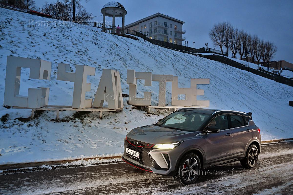 Жанровая фотография. Автомобиль марки Geely Coolray на улицах Перми.