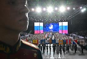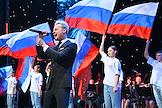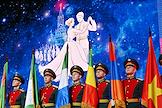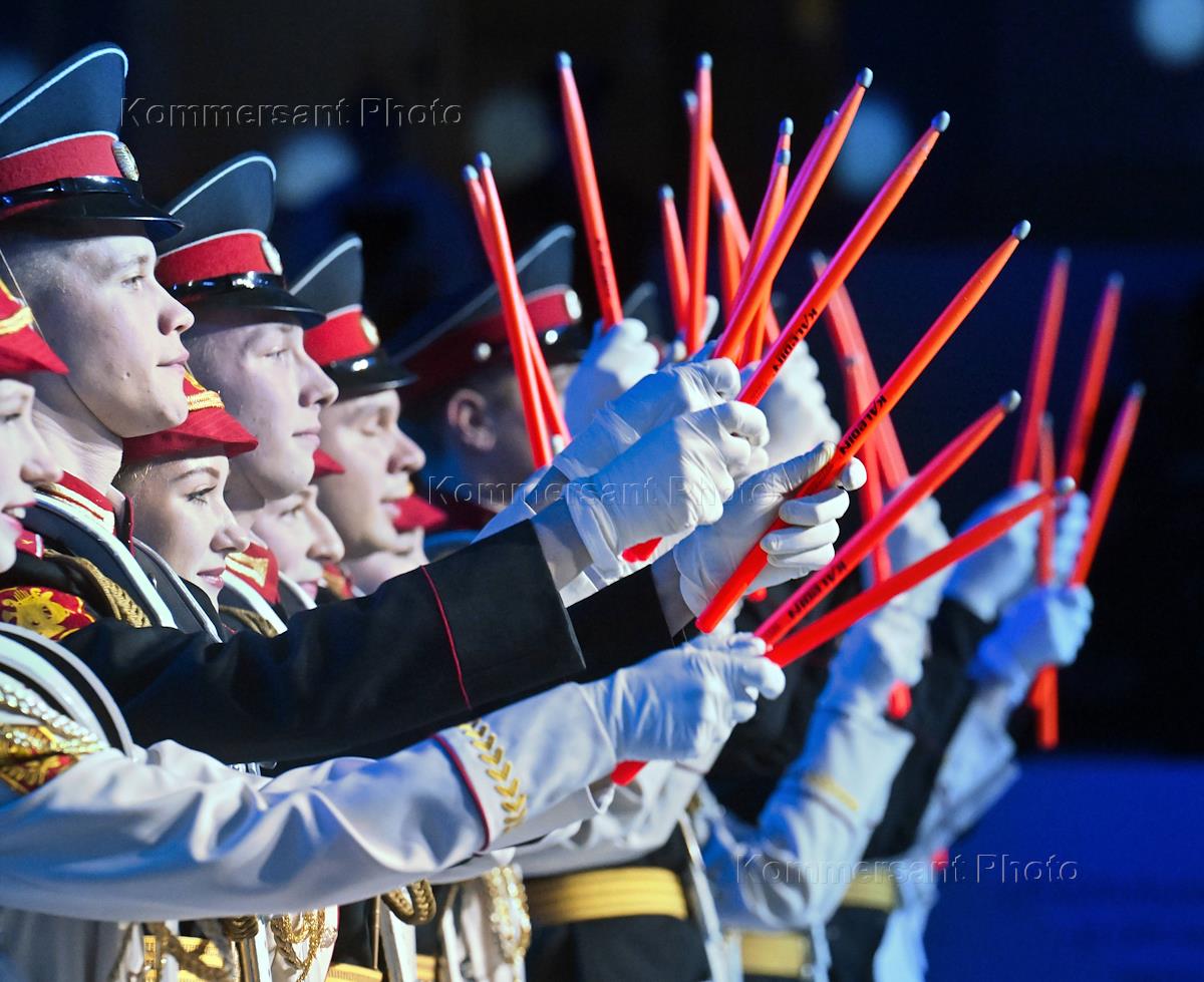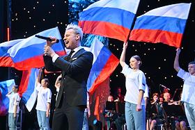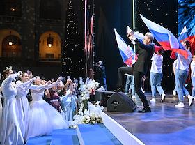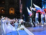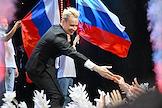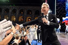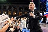 IX Международный кремлевский благотворительный кадетский бал (МБКБ) в Гостином дворе. Певец SHAMAN (Ярослав Дронов) (в центре) во время выступления.
