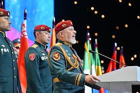 IX Международный кремлевский благотворительный кадетский бал (МБКБ) в Гостином дворе. Помощник директора Федеральной службы войск национальной гвардии России (Росгвардия) Алексей Воробьев (справа) во время бала.