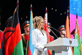 IX Международный кремлевский благотворительный кадетский бал (МБКБ) в Гостином дворе. Директор Департамента информации и печати МИД России Мария Захарова во время бала.