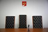 Жанровая фотография. Второй западный окружной военный суд. Зал заседаний. Место судей в зале.