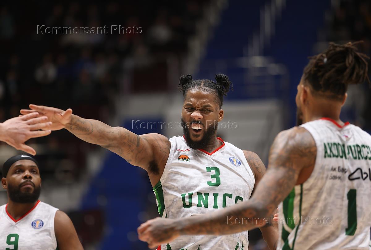 VTB United Basketball League. Match between the teams "Zenit" (St. Petersburg) - UNICS (Kazan) at the Arena stadium. UNICS player Jalen Reynolds (center) during the match.