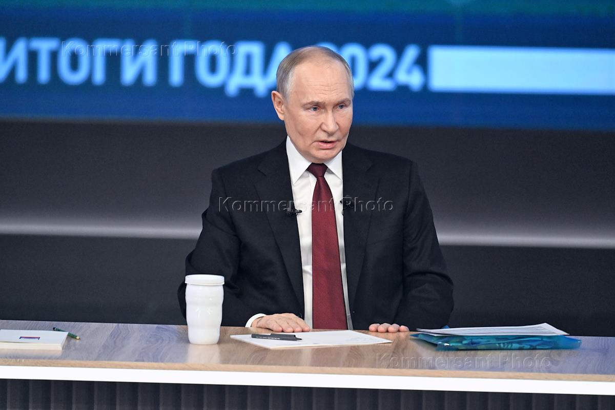 Пресс-конференция и прямая линия "Итоги года 2024" с президентом России Владимиром Путиным в совмещенном формате в Гостином дворе.