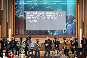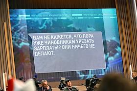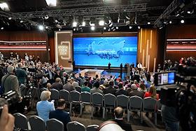 Пресс-конференция и прямая линия с президентом России Владимиром Путиным в совмещенном формате в Гостином дворе.