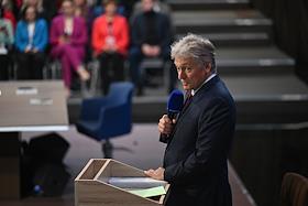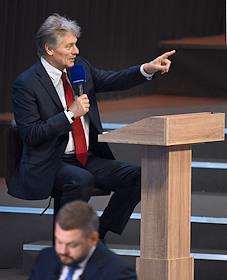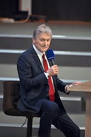 Пресс-конференция и прямая линия "Итоги года 2024" с президентом России Владимиром Путиным в совмещенном формате в Гостином дворе. Заместитель руководителя администрации президента России, пресс-секретарь президента России Дмитрий Песков во время пресс-конференции.