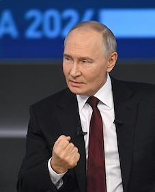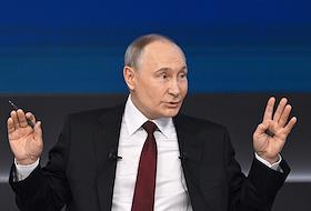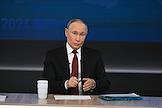 Пресс-конференция и прямая линия "Итоги года 2024" с президентом России Владимиром Путиным в совмещенном формате в Гостином дворе. Президент России Владимир Путин во время пресс-конференции.