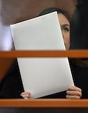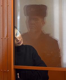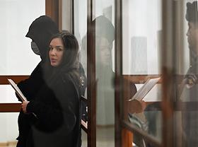 Оглашение приговора бывшей сотруднице администрации Белгородской области Виктории Шинкарук (внесена в список террористов и экстремистов), по делу о подготовке теракта на железной дороге и нефтеперерабатывающих объектах, во Втором западном окружном военном суде. Бывшая сотрудница администрации Белгородской области Виктория Шинкарук (внесена в список террористов и экстремистов) во время заседания суда.