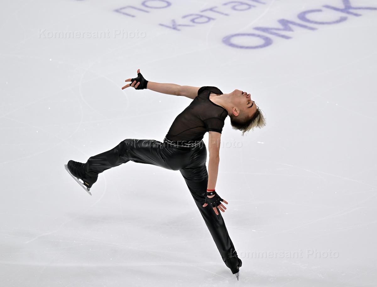 Чемпионат России по фигурному катанию на "G-Drive Арене". Мужчины. Короткая программа. Фигурист Петр Гуменник во время выступления.