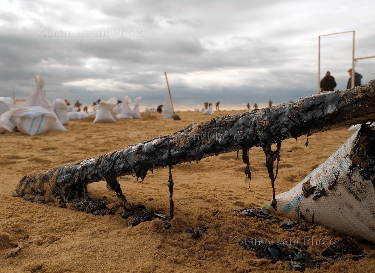Volunteers during the rectification of the consequences of an oil spill due to the disaster of two Volgoneft tankers in the Kerch Strait on the afternoon of December 15, 2024, on the coastline in Anapa.