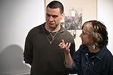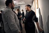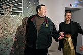 Церемония открытия выставки художницы Тамары Шипициной "Палисадники" в рамках Программы поддержки молодого искусства в Московском музее современного искусства (MMOMA) на Гоголевском бульваре. Предприниматель Ян Яновский (слева) и владелица галереи современной живописи Carre d'artistes Юлия Акимова (справа) на церемонии.